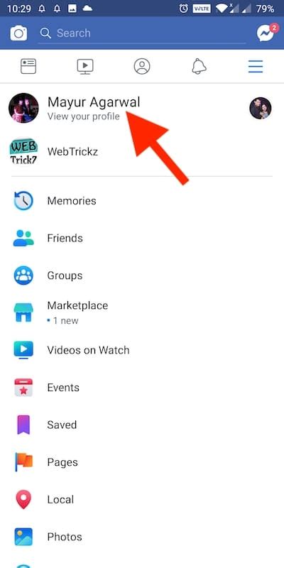 - Click on in your profile image within the prime proper nook of the Fb web page.